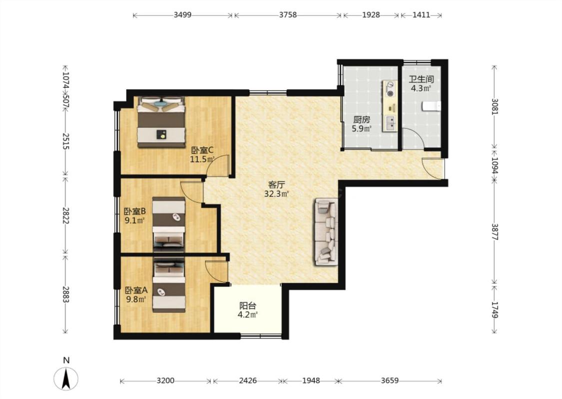 3室1厅