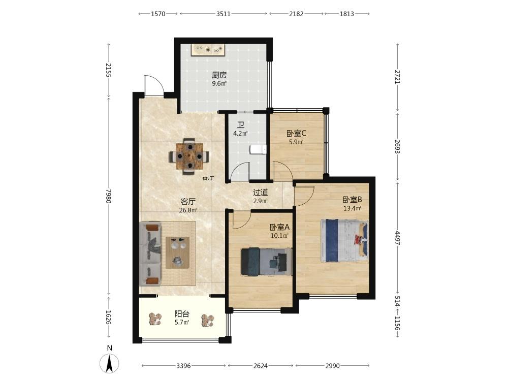 3室2厅 恩祥新城(北大华府A区)