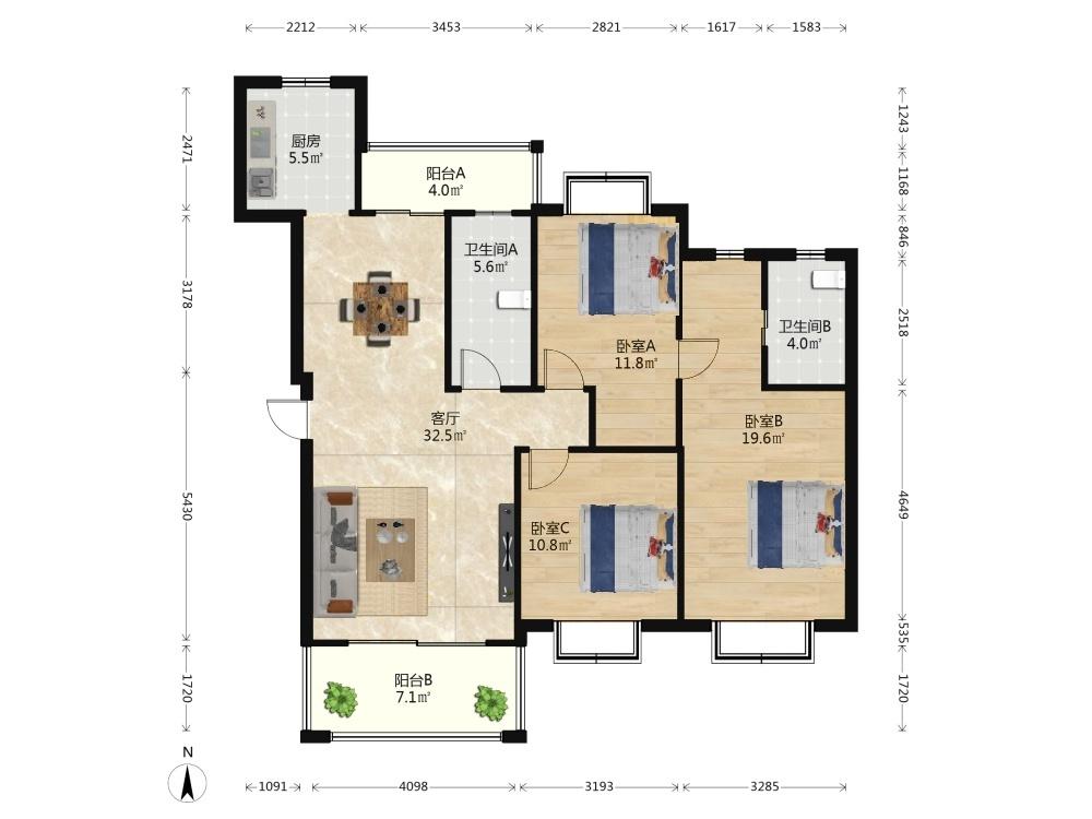 3室2厅 棕榈泉国际公馆