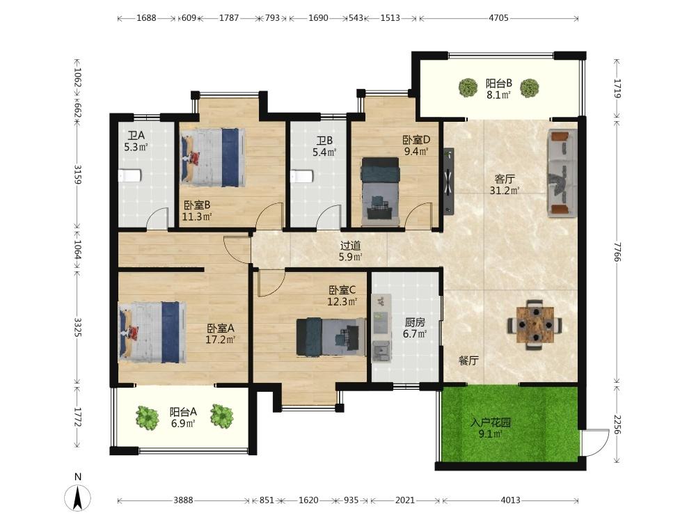 4室2厅 绿地海森林