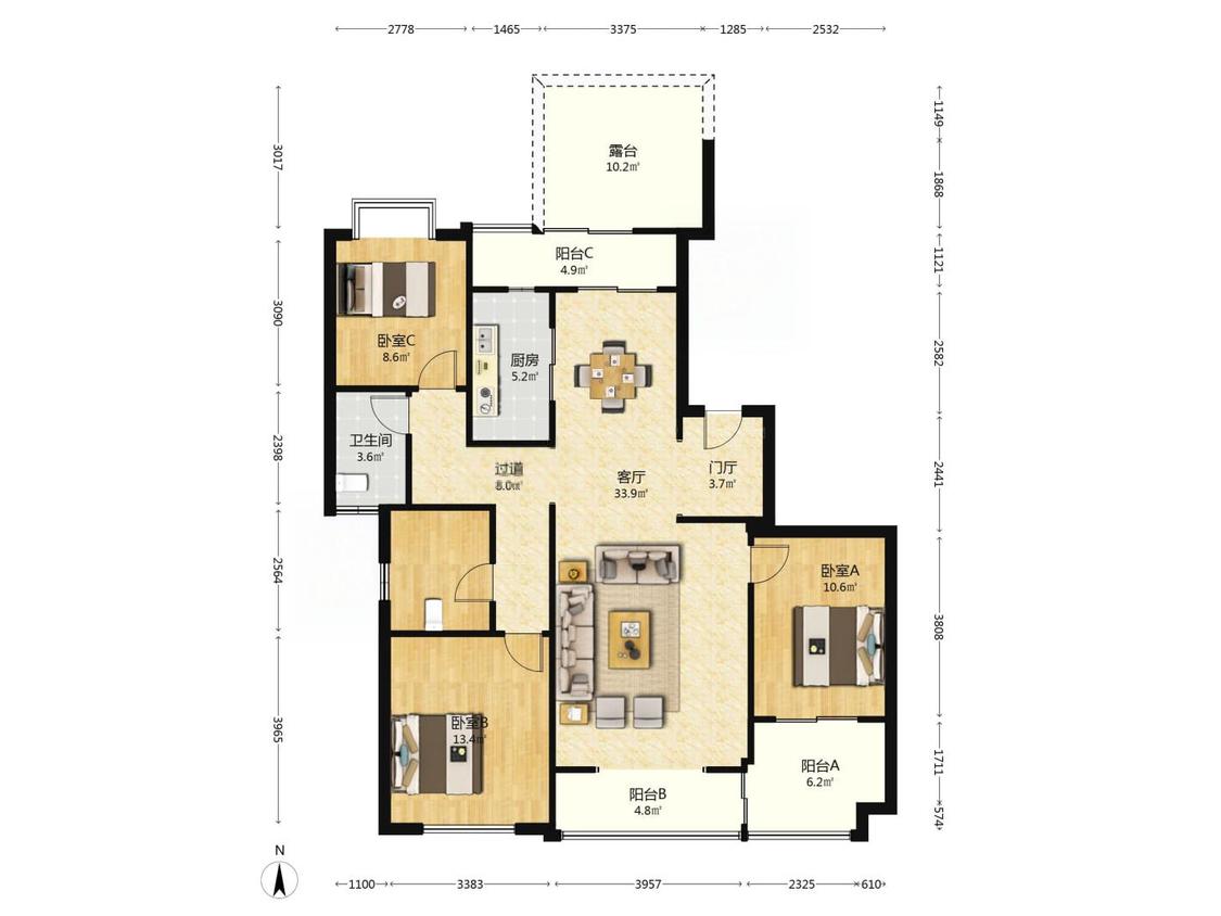 3室2厅 海航豪庭(北苑一区)