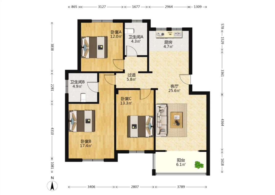 3室2厅 嘉丽花苑
