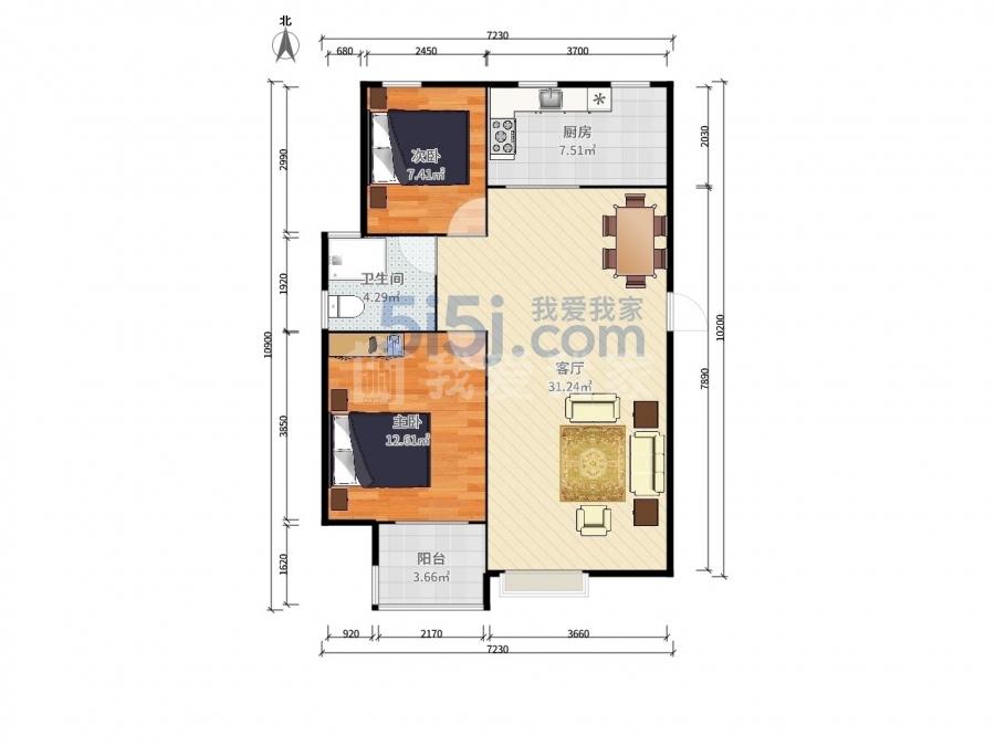 2室1厅 东郊小镇(第六街区)