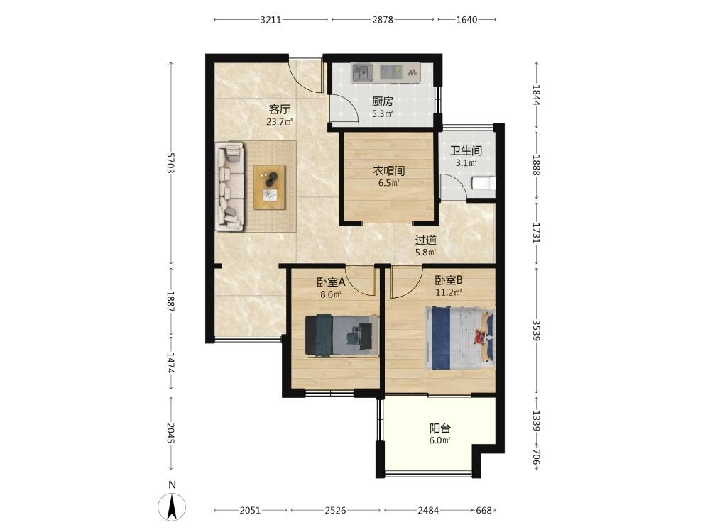 2室1厅 平治东苑
