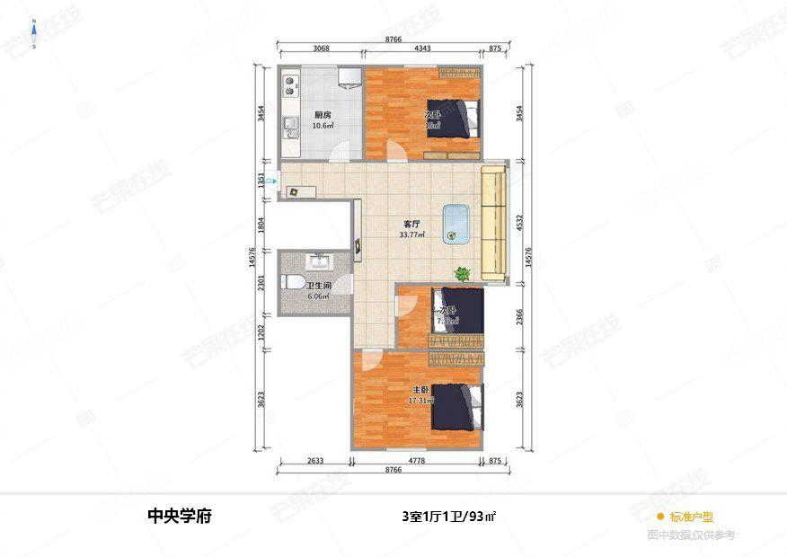 2室1厅 中央学府