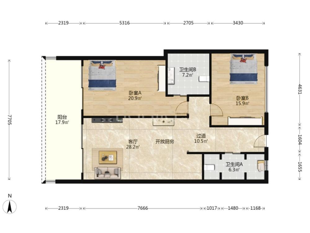 2室2厅 天成中央海岸