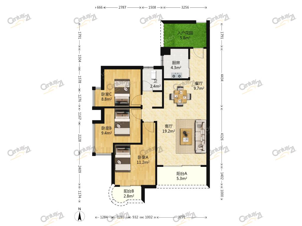 3室2厅 中天彩虹城南区