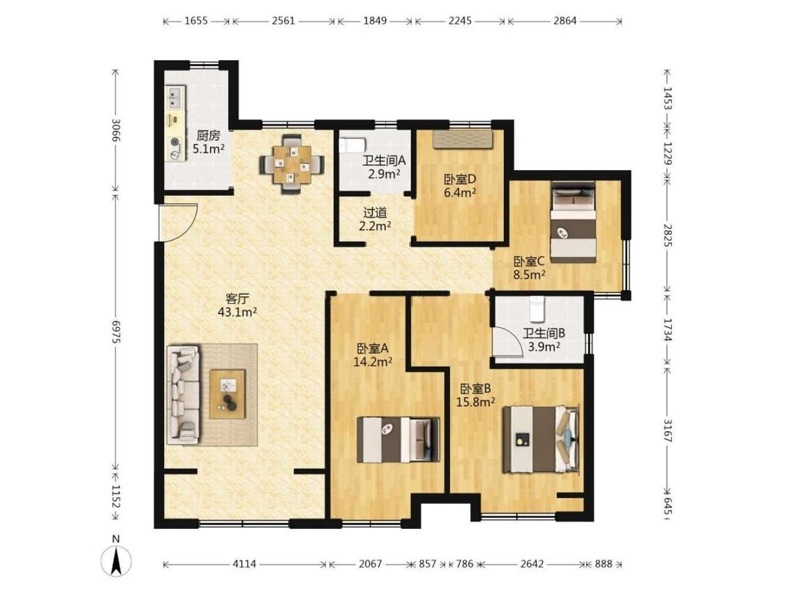 4室2厅 锦绣城(二期朗园)