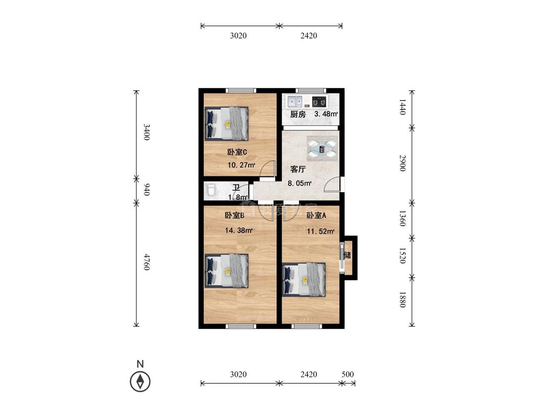 3室1厅 五路通北街3号院