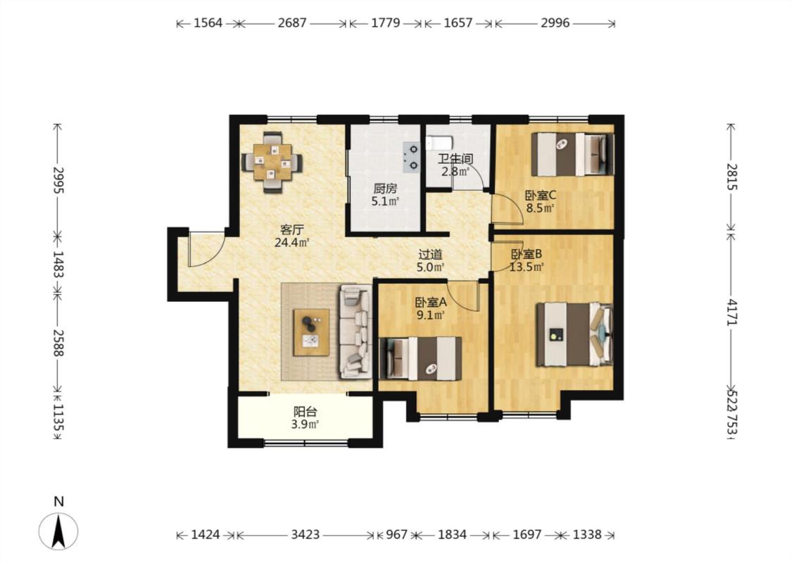 3室2厅
