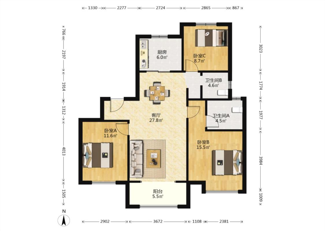 3室2厅