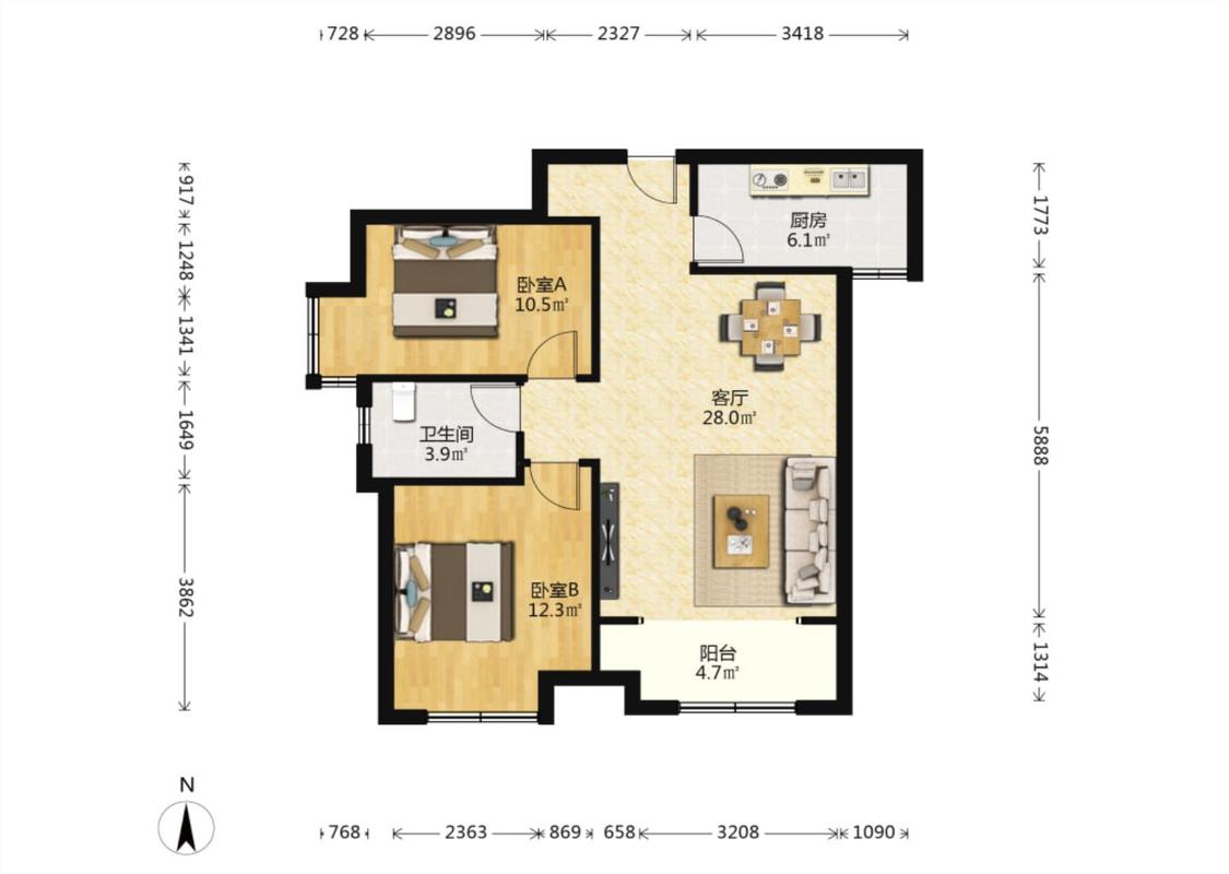 2室1厅 城市锦上