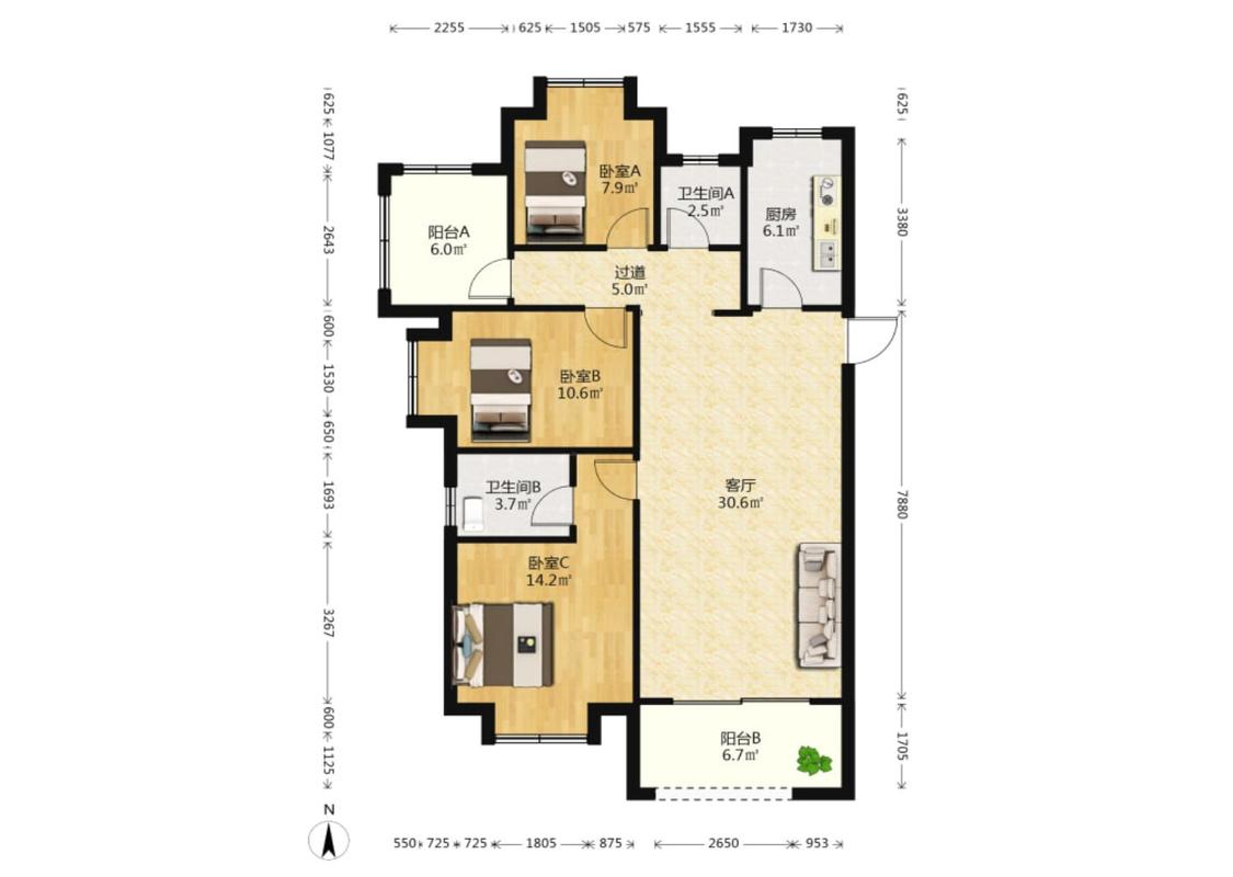 3室1厅 联发滨江壹号(F区)