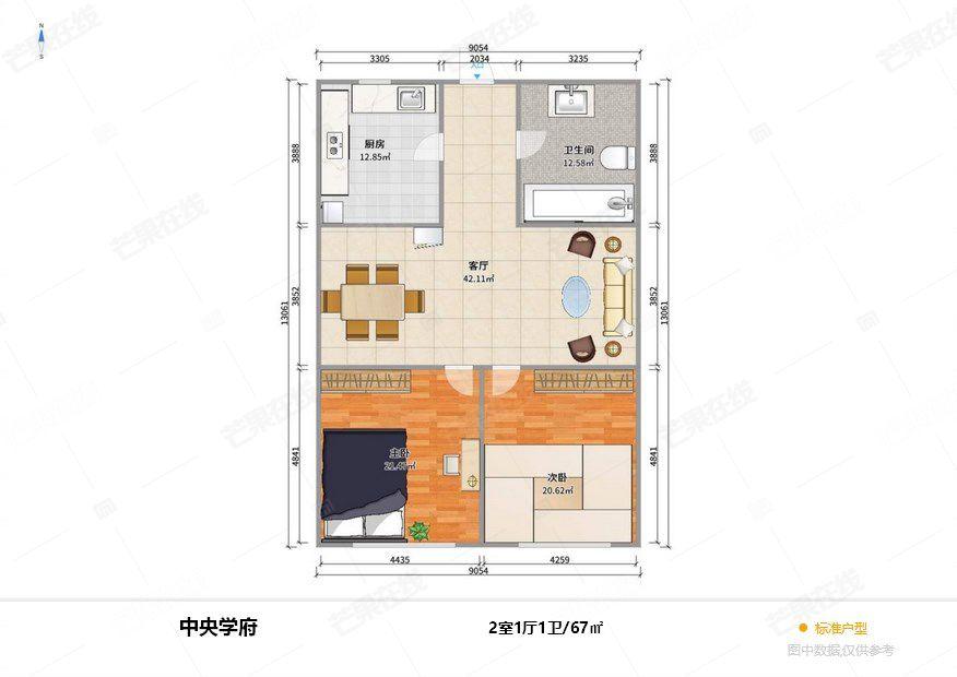 2室1厅 中央学府