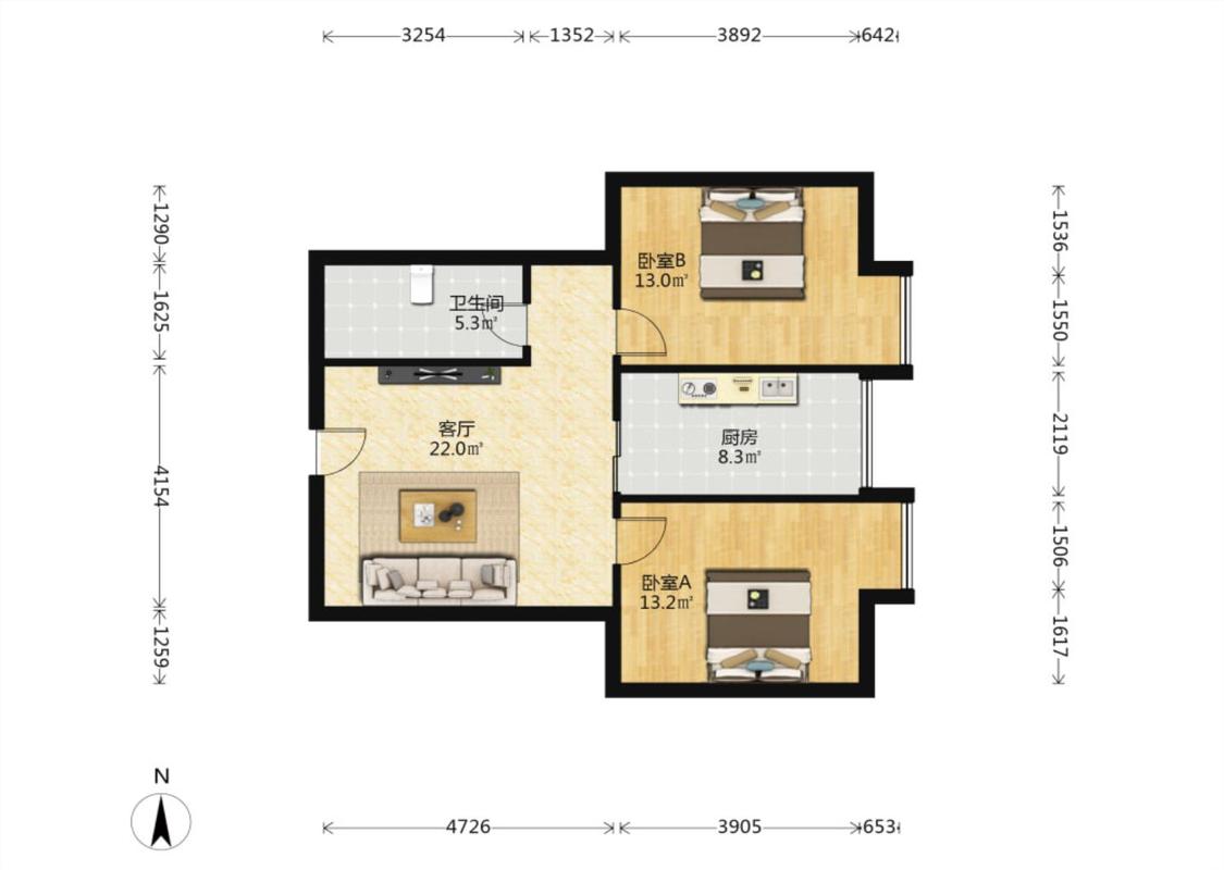 2室2厅 辰宫双河湾