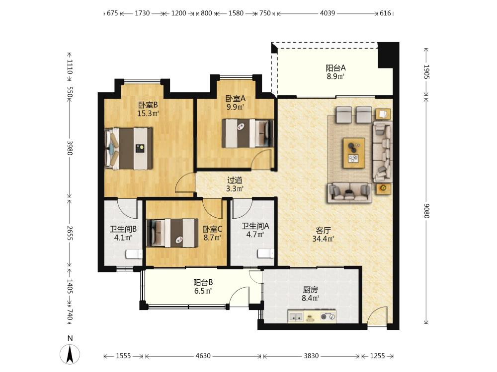3室2厅