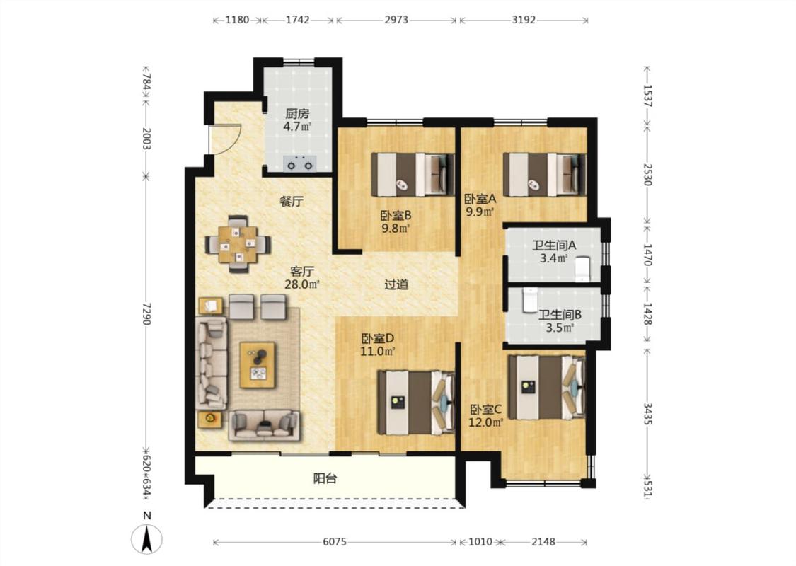 4室2厅 绿地云上府