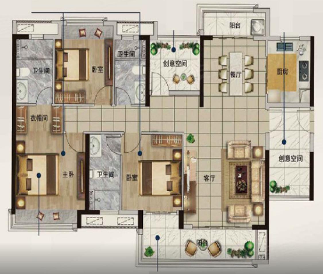 4室2厅 绿地公园城