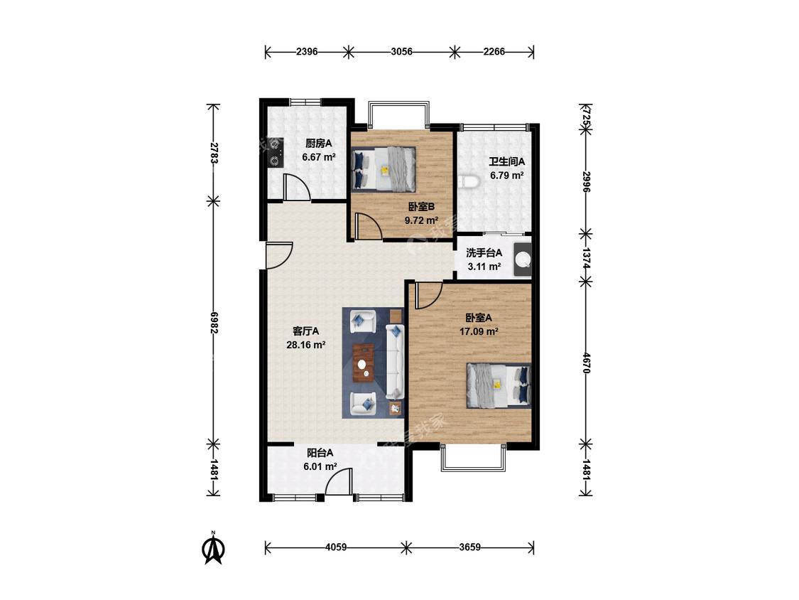 2室1厅 贝越水岸名邸