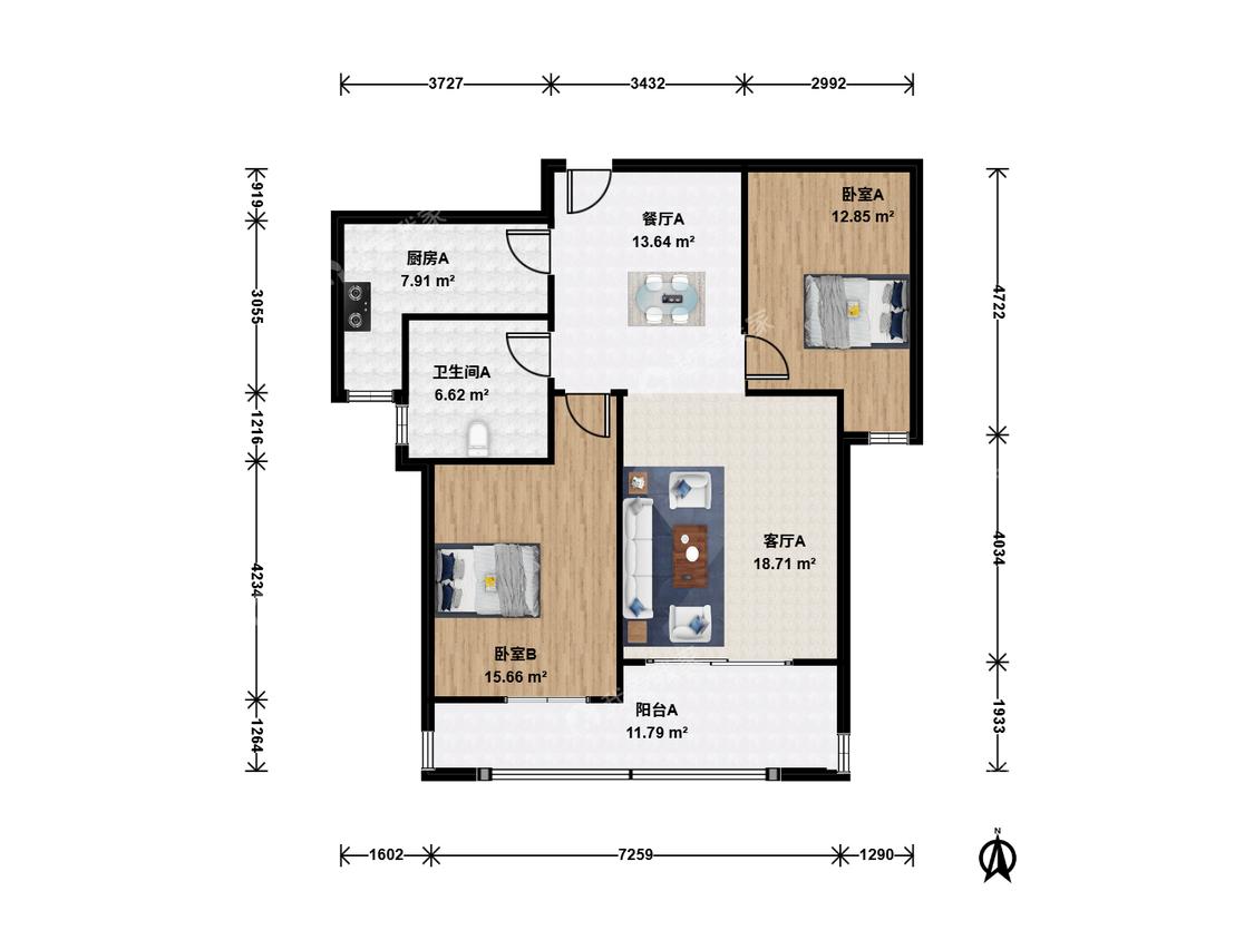 2室2厅 嘉业阳光假日