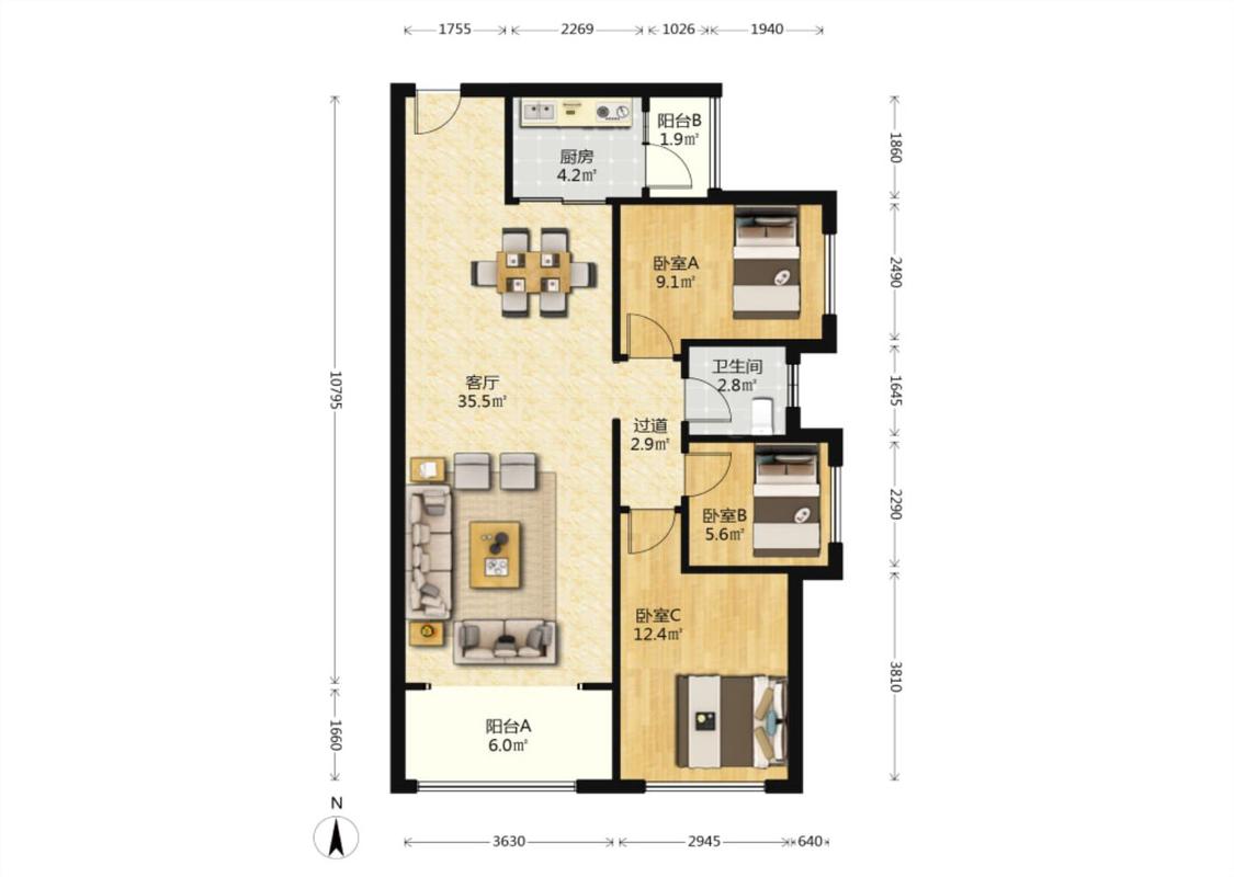3室2厅 经世龙城