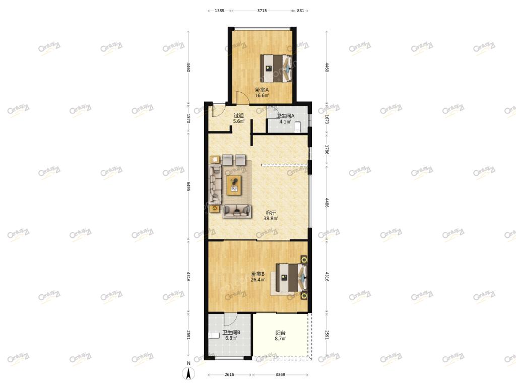 2室2厅 嘉和冠山海
