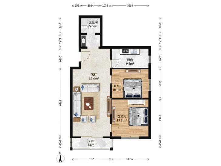 2室1厅 首钢金顶街(五区)
