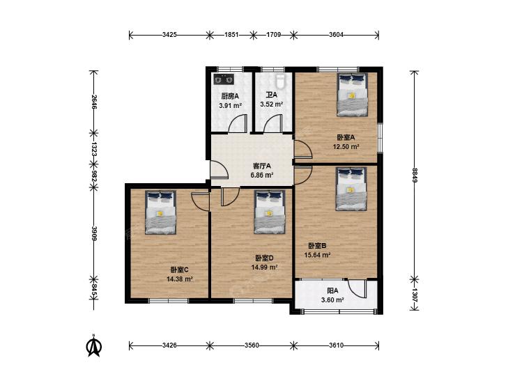 4室1厅 白广路东里(小区)