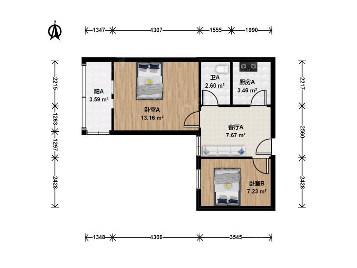 2室1厅 宝产胡同