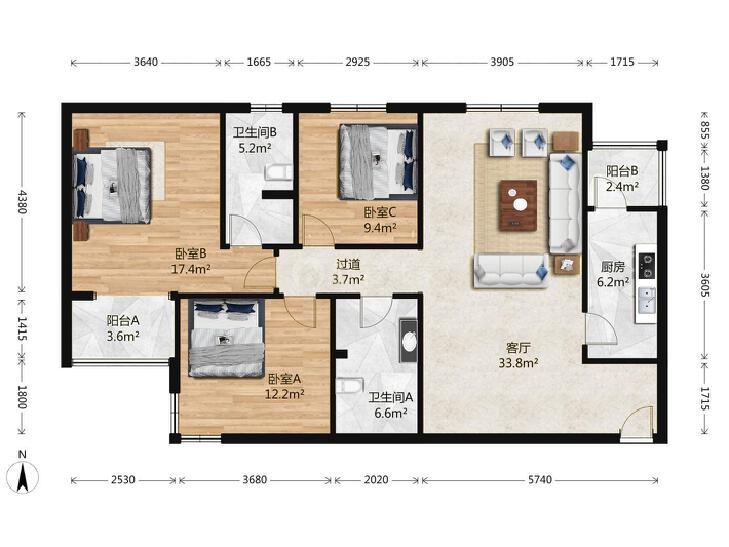3室1厅 通景园