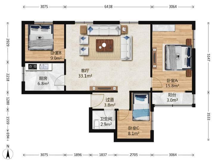 3室1厅 龙翔路小区