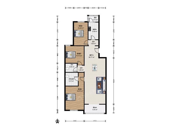 3室1厅 龙锦苑(东五区)