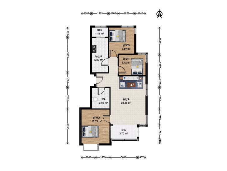 3室1厅 首开常青藤(C区)