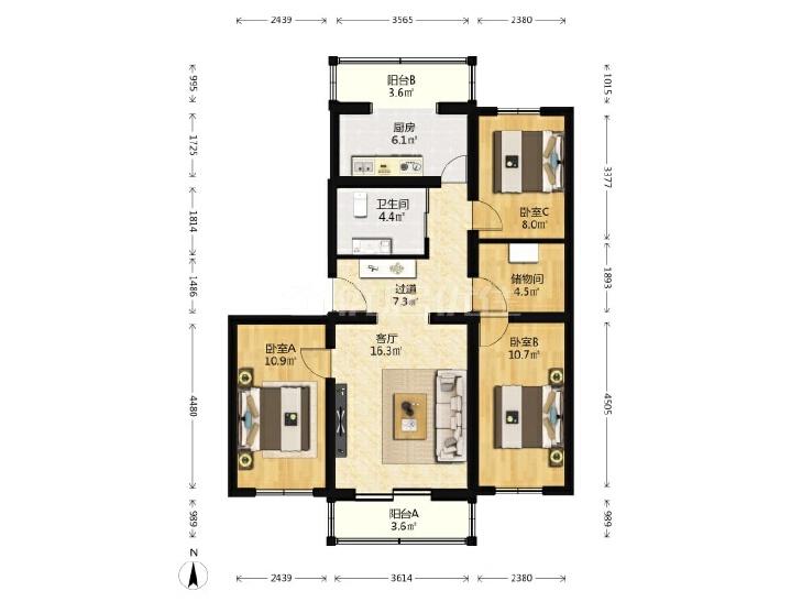 3室2厅 贵园北里(甲区)