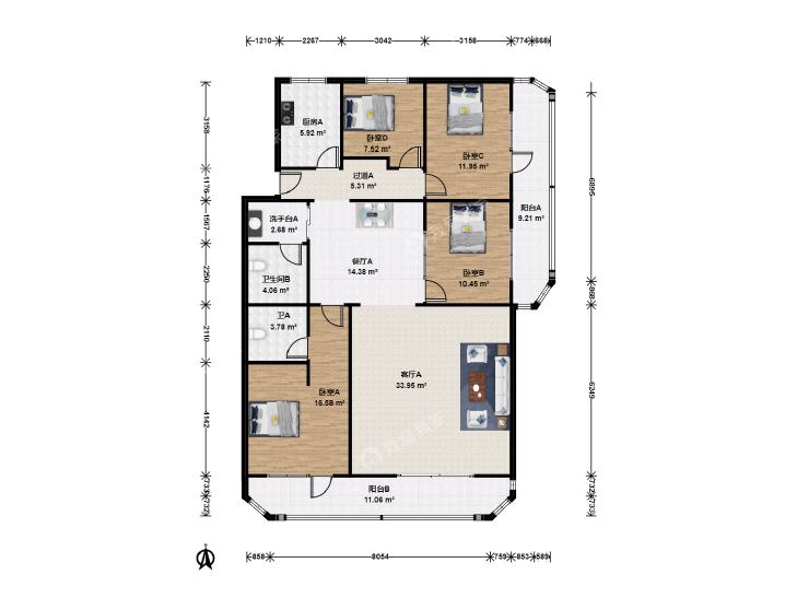 4室2厅 胜古中路1号院