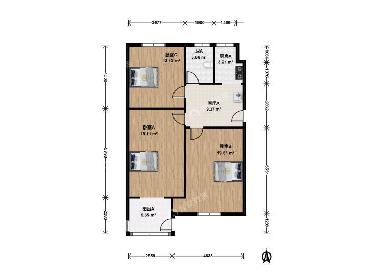 3室1厅 白广路