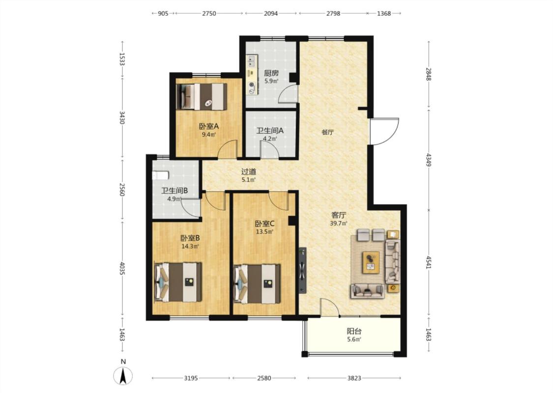 3室2厅