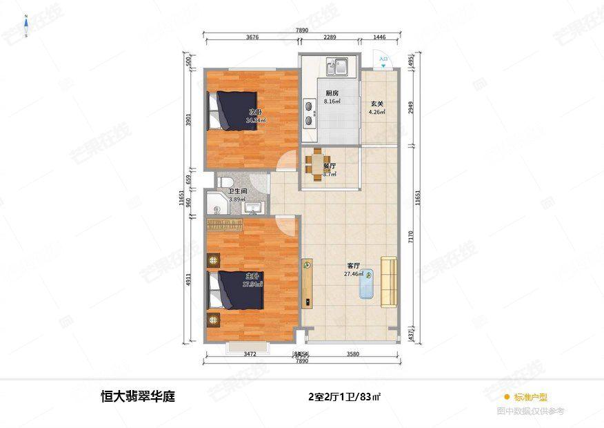 2室1厅 恒大翡翠华庭