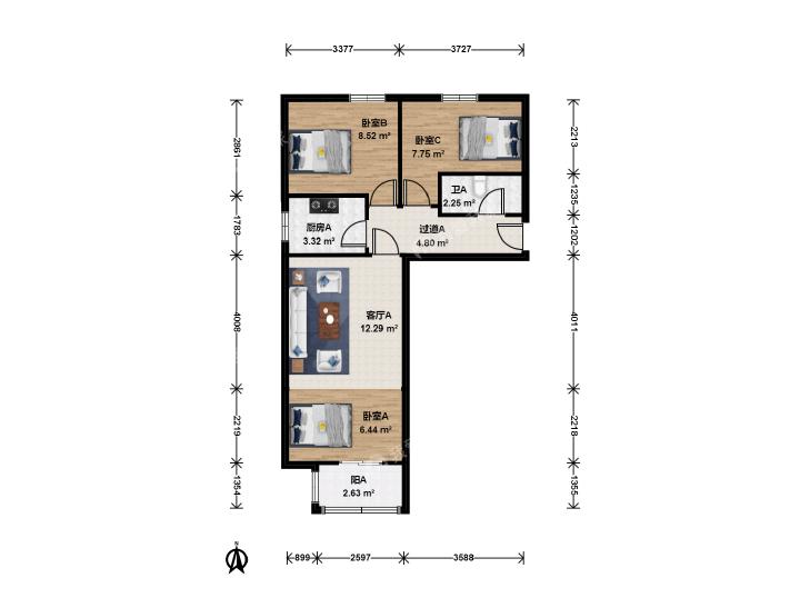3室1厅 昊天大街17号院