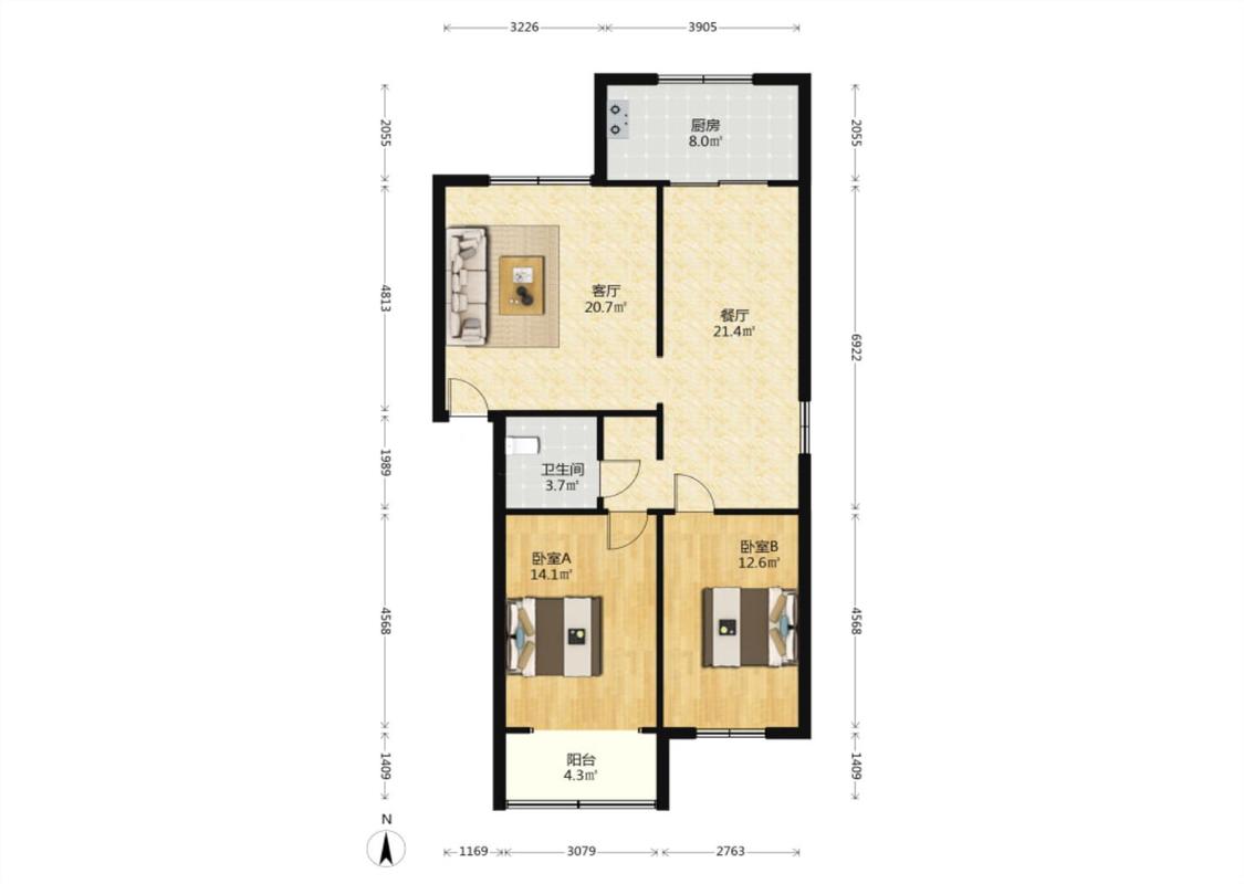 2室2厅 大地世纪小区