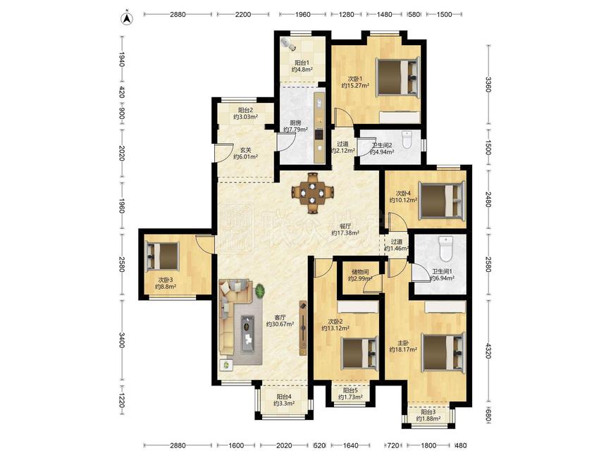 5室2厅 玺萌公馆