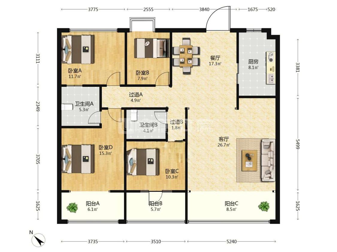 4室2厅 瑞鼎城