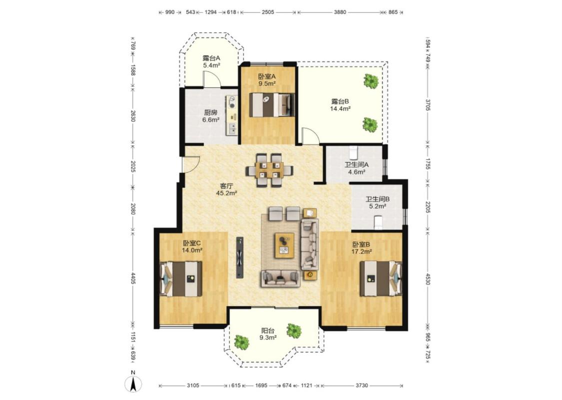 4室2厅 铂金公馆南苑