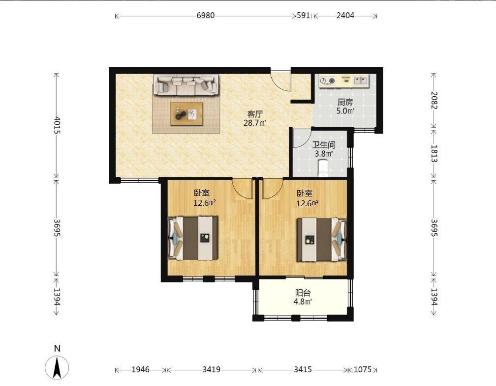 2室1厅 汇郡海棠苑