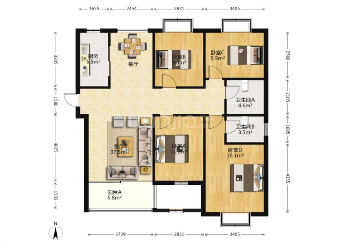 4室2厅 龙翔中央公馆