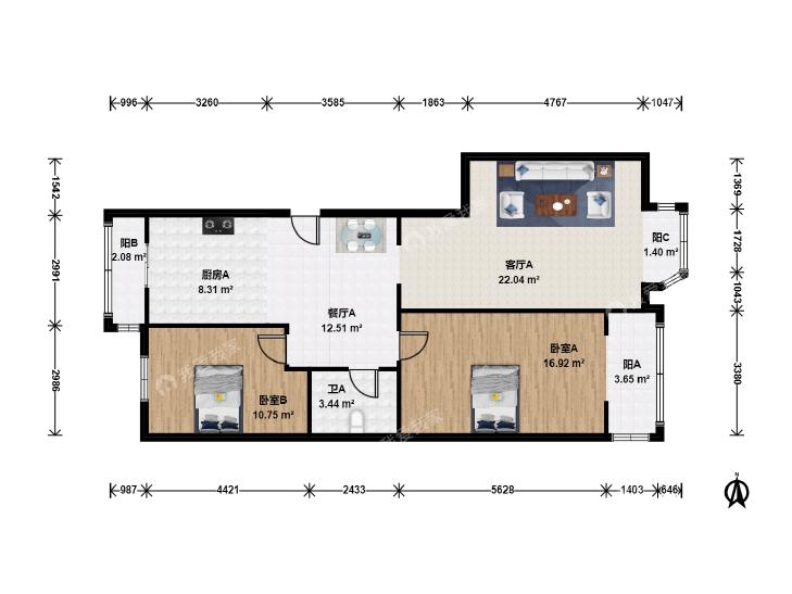 2室2厅 阳光新干线