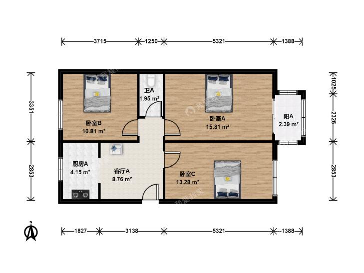 3室1厅 北官厅胡同