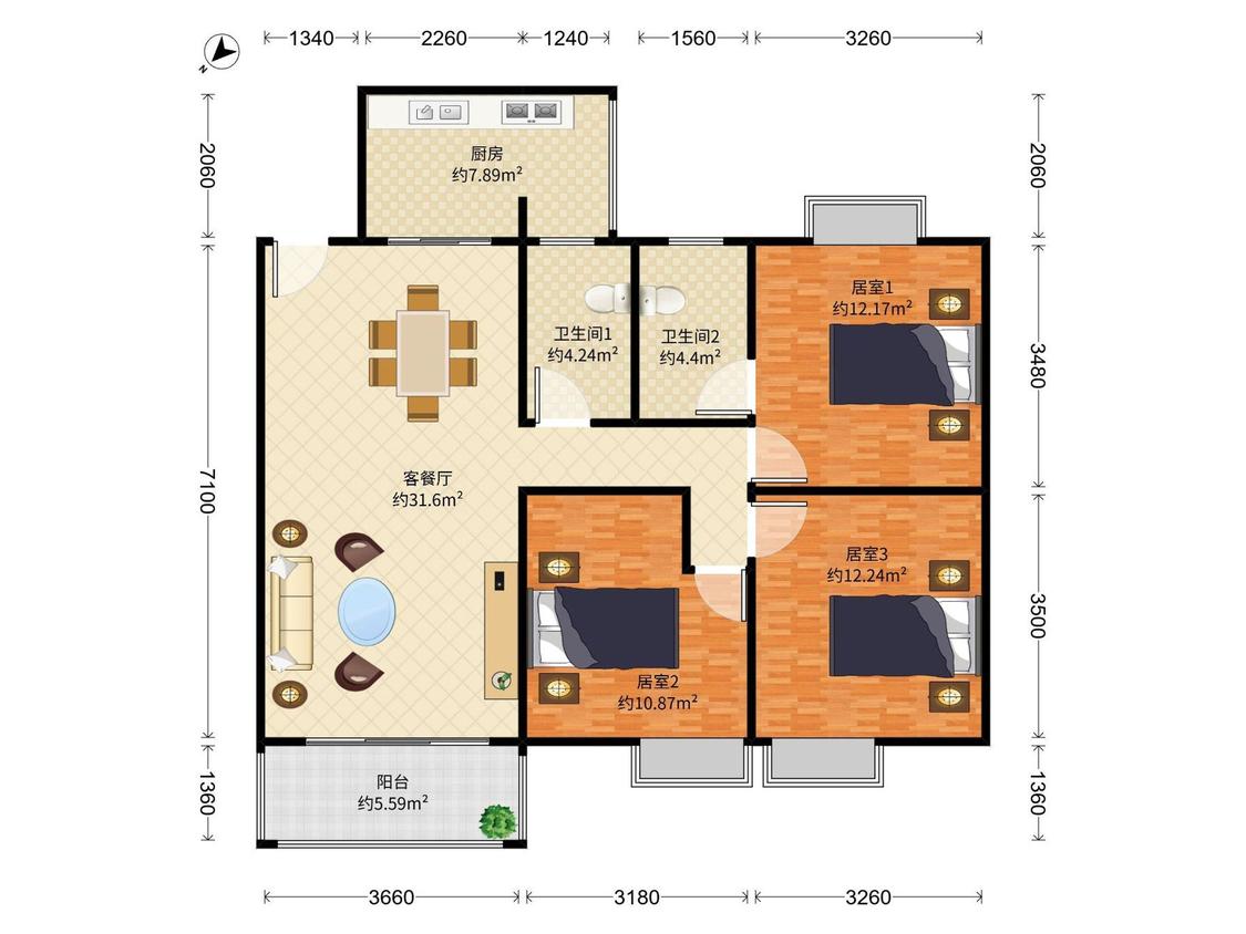 3室2厅
