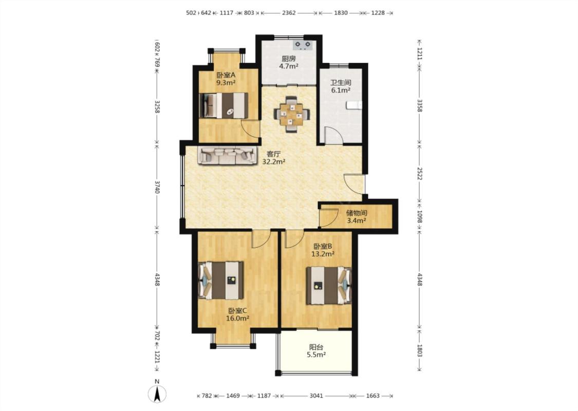 3室1厅