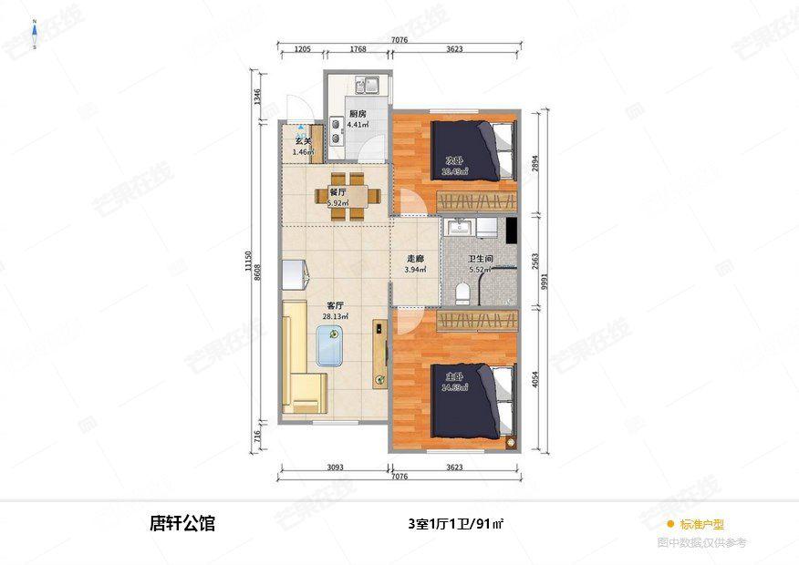 2室1厅 唐轩公馆